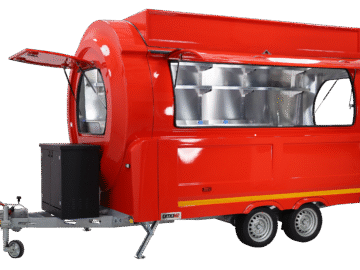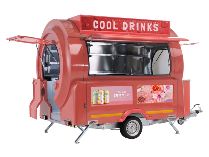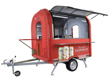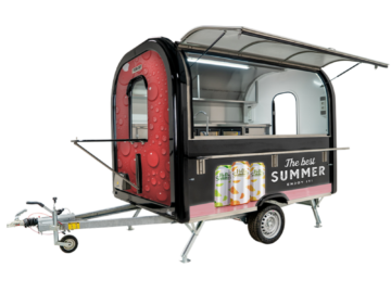 Ein Baranhänger trennt Verkaufsfläche und Antriebssystem. Das reduziert Wartungskosten und macht die Technik übersichtlicher. Gleichzeitig entsteht eine eigenständige, professionell wirkende Verkaufseinheit mit klarer Markenpräsenz.