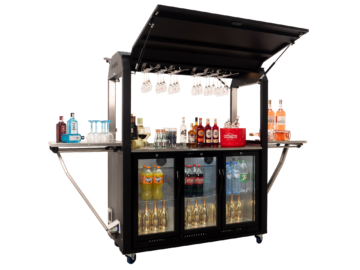 Eine mobile Bar ist gleichzeitig Verkaufsfläche und Werbeträger. Individuelles Branding erhöht die Wiedererkennung und stärkt die Markenpräsenz.